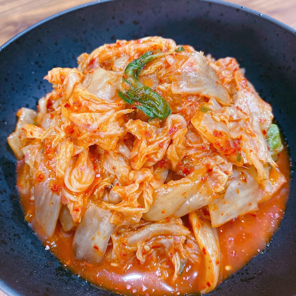 こだわりの薬念醤で丁寧に漬け込んだ白菜ベースのキムチを冷凍保存しています。